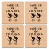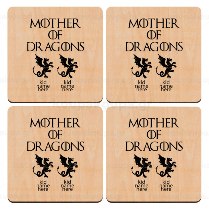 GOT, Mother of Dragons (με ονόματα παιδικά), ΣΕΤ x4 Σουβέρ ξύλινα τετράγωνα plywood (9cm)