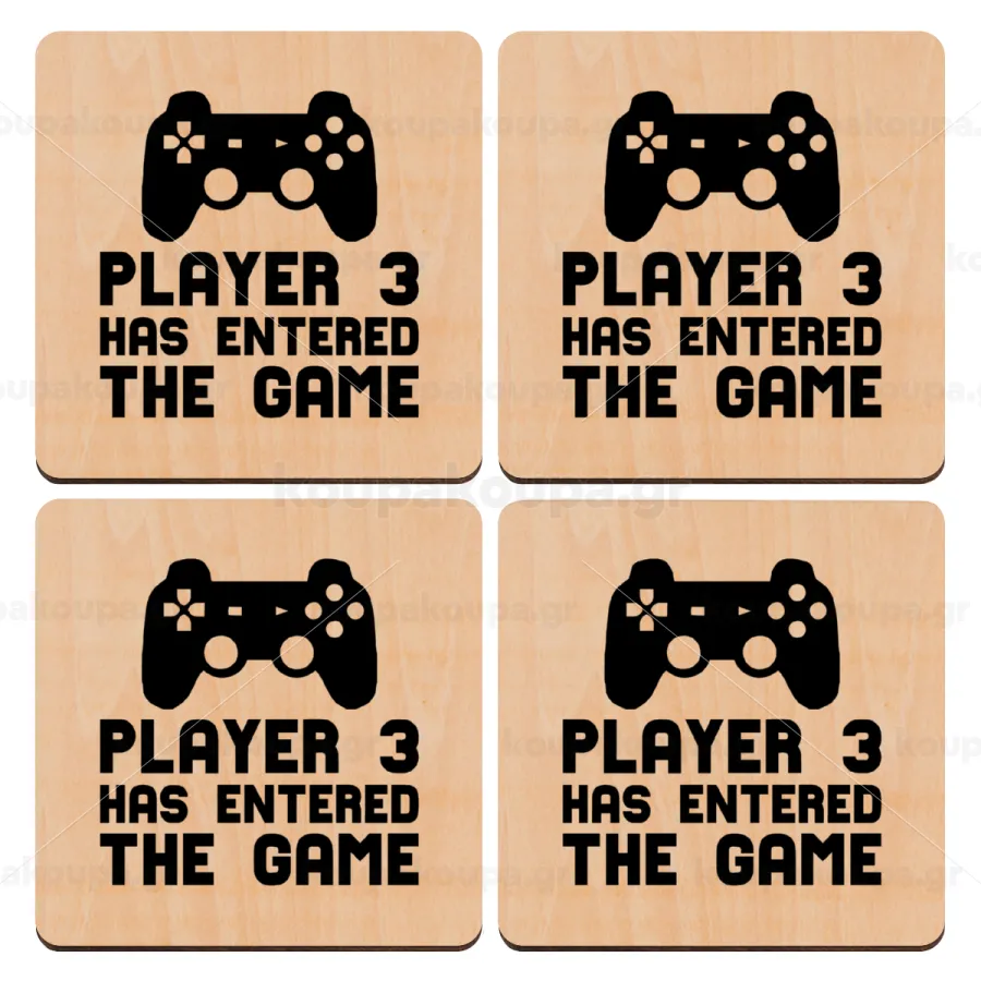 Player 3 has entered the Game, ΣΕΤ x4 Σουβέρ ξύλινα τετράγωνα plywood (9cm)