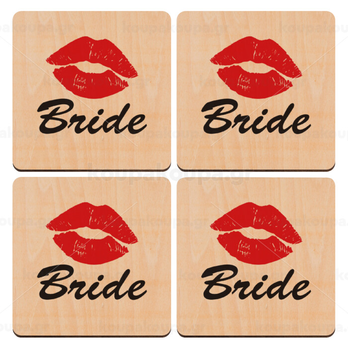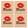Bride kiss, ΣΕΤ x4 Σουβέρ ξύλινα τετράγωνα plywood (9cm)