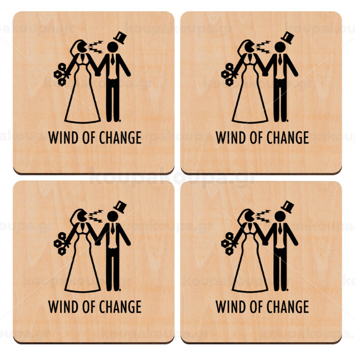 Couple Wind of Change, ΣΕΤ x4 Σουβέρ ξύλινα τετράγωνα plywood (9cm)