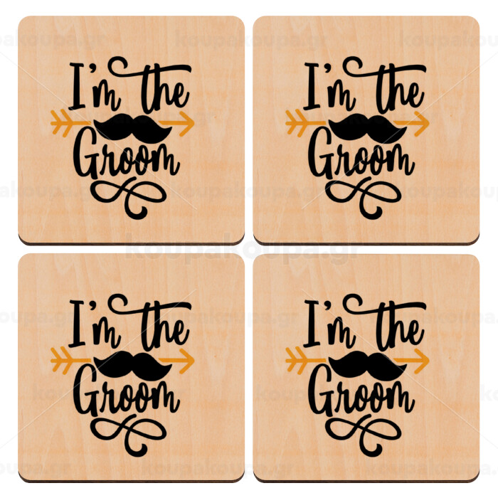 I'm the groom mustache, ΣΕΤ x4 Σουβέρ ξύλινα τετράγωνα plywood (9cm)