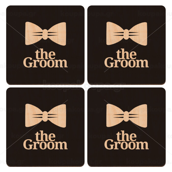 The Groom, ΣΕΤ x4 Σουβέρ ξύλινα τετράγωνα plywood (9cm)