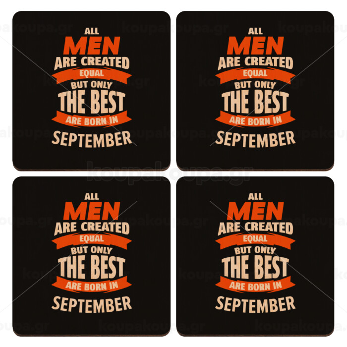 All men are created equal but only the best are born in September, ΣΕΤ x4 Σουβέρ ξύλινα τετράγωνα plywood (9cm)
