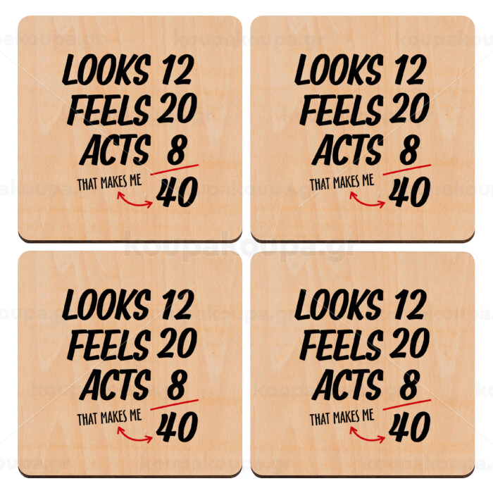Looks, feels, acts LIKE your AGE, ΣΕΤ x4 Σουβέρ ξύλινα τετράγωνα plywood (9cm)