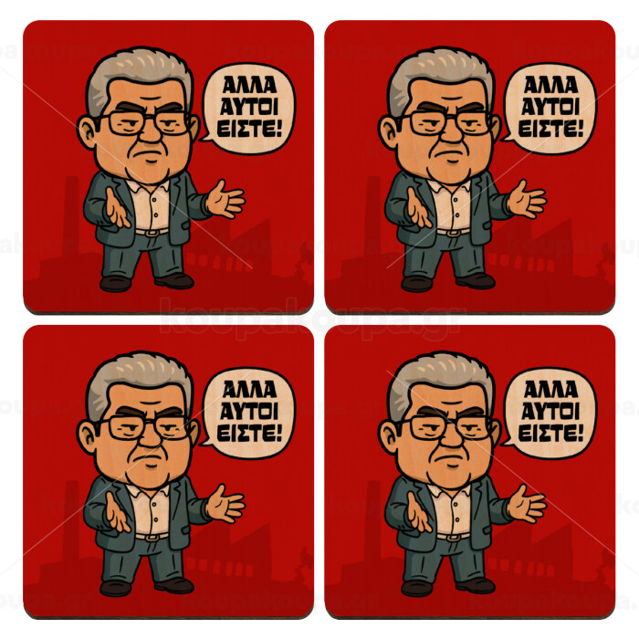 Κουτσούμπας, "Αλλά αυτοί είστε!", ΣΕΤ x4 Σουβέρ ξύλινα τετράγωνα plywood (9cm)