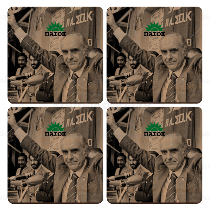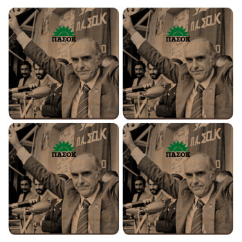 ΠΑΣΟΚ Ανδρέας, ΣΕΤ x4 Σουβέρ ξύλινα τετράγωνα plywood (9cm)