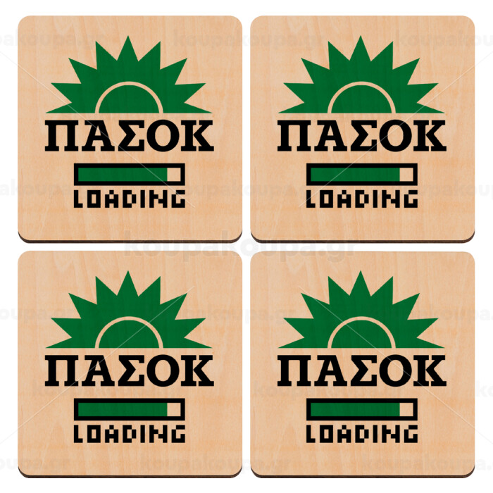 PASOK Loading, ΣΕΤ x4 Σουβέρ ξύλινα τετράγωνα plywood (9cm)
