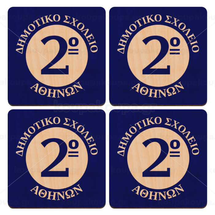 Έμβλημα Σχολικό μπλε, ΣΕΤ x4 Σουβέρ ξύλινα τετράγωνα plywood (9cm)