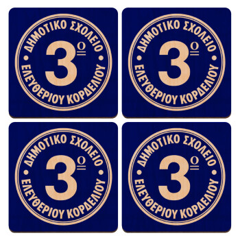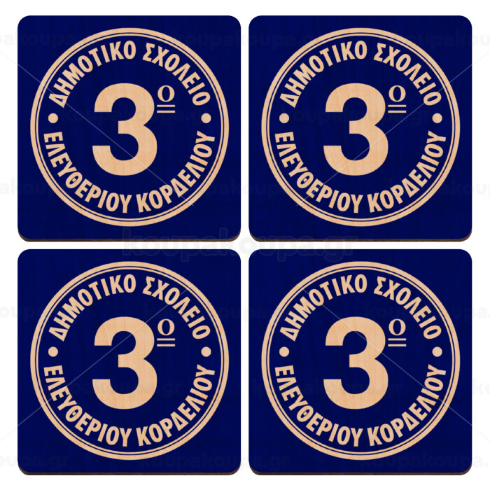 Έμβλημα Σχολικό μπλε, ΣΕΤ x4 Σουβέρ ξύλινα τετράγωνα plywood (9cm)