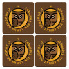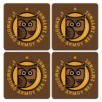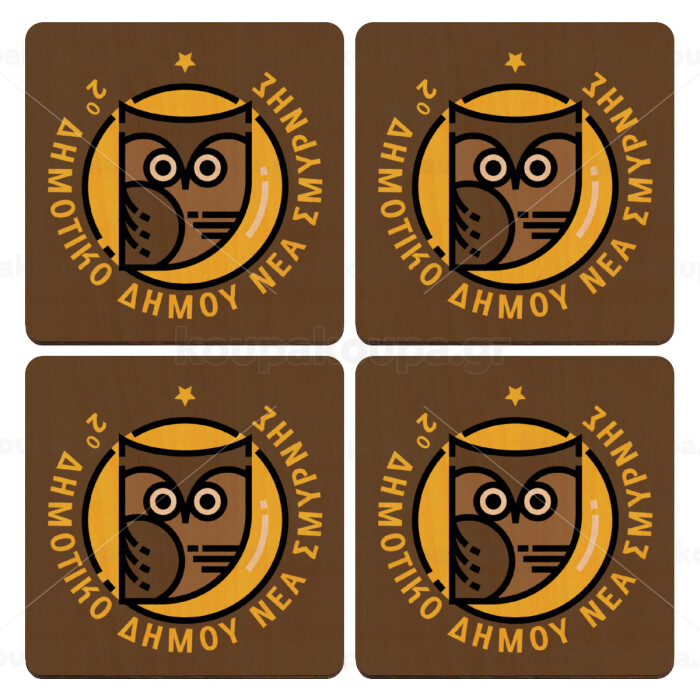 Έμβλημα Σχολικό brown, ΣΕΤ x4 Σουβέρ ξύλινα τετράγωνα plywood (9cm)