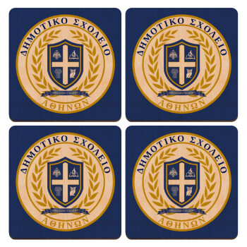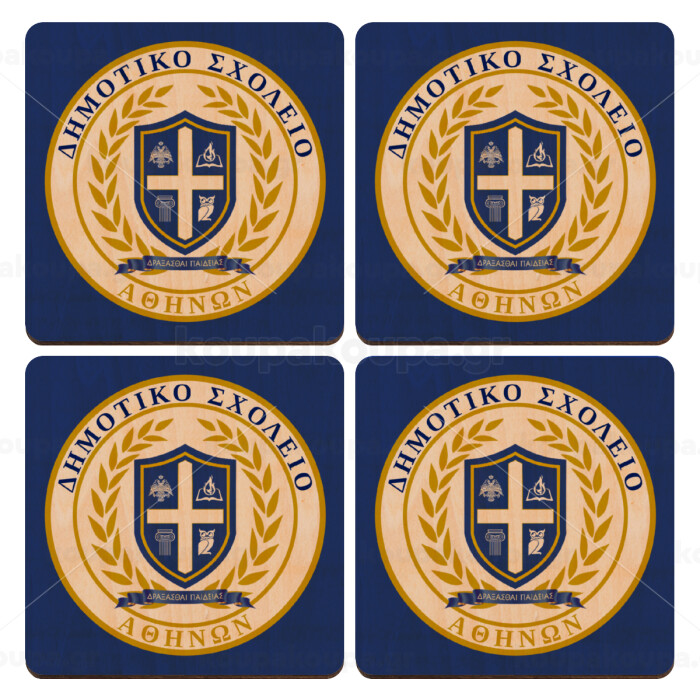 Σχολικό σήμα, ΣΕΤ x4 Σουβέρ ξύλινα τετράγωνα plywood (9cm)