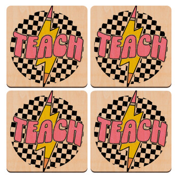 Teach, ΣΕΤ x4 Σουβέρ ξύλινα τετράγωνα plywood (9cm)