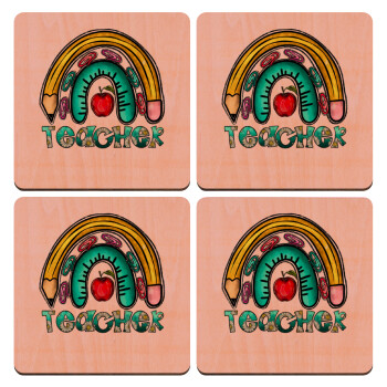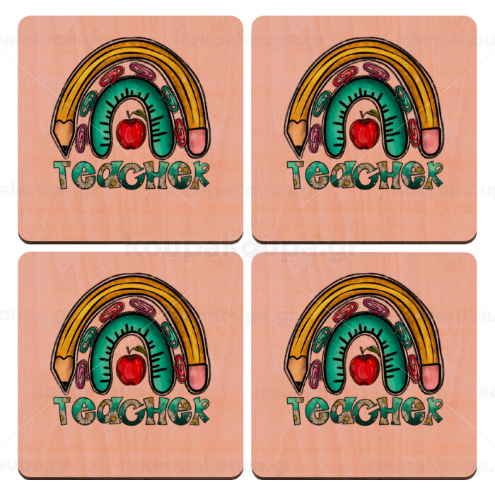 Teacher, ΣΕΤ x4 Σουβέρ ξύλινα τετράγωνα plywood (9cm)