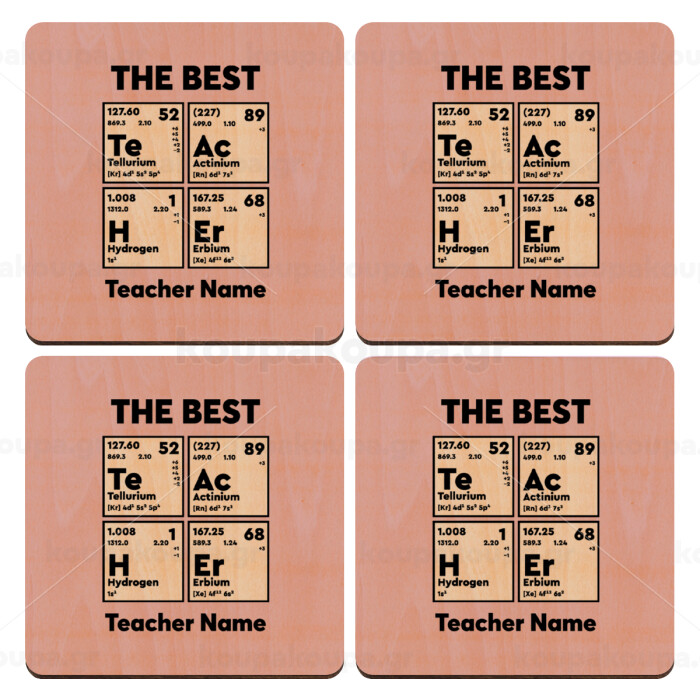THE BEST Teacher chemical symbols, ΣΕΤ x4 Σουβέρ ξύλινα τετράγωνα plywood (9cm)