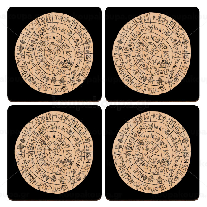Δίσκος Φαιστού, ΣΕΤ x4 Σουβέρ ξύλινα τετράγωνα plywood (9cm)