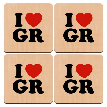 I Love GR, ΣΕΤ x4 Σουβέρ ξύλινα τετράγωνα plywood (9cm)