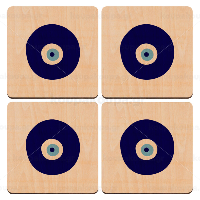 Χάντρα γαλαζιά, ΣΕΤ x4 Σουβέρ ξύλινα τετράγωνα plywood (9cm)
