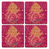 Glossy wooden (MDF) coasters, set of 4 pieces, tremendous durability in wet and hot dishes. Protects table surfaces.