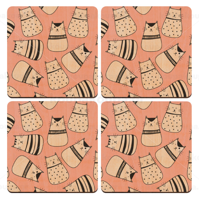 Cute cats, ΣΕΤ x4 Σουβέρ ξύλινα τετράγωνα plywood (9cm)