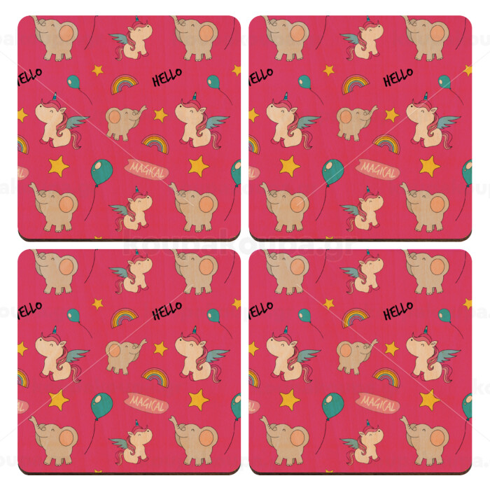 Glossy wooden (MDF) coasters, set of 4 pieces, tremendous durability in wet and hot dishes. Protects table surfaces.