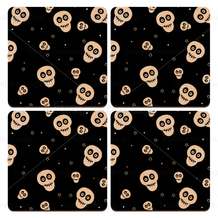 Skull avatar, ΣΕΤ x4 Σουβέρ ξύλινα τετράγωνα plywood (9cm)