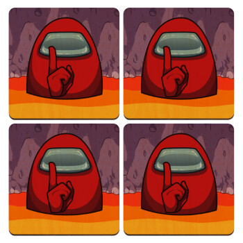 Among US, ΣΕΤ x4 Σουβέρ ξύλινα τετράγωνα plywood (9cm)