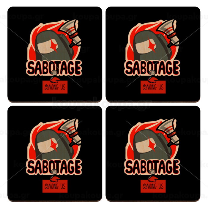 Among US Sabotage, ΣΕΤ x4 Σουβέρ ξύλινα τετράγωνα plywood (9cm)