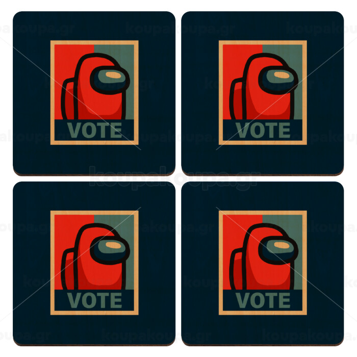 Among US VOTE, ΣΕΤ x4 Σουβέρ ξύλινα τετράγωνα plywood (9cm)
