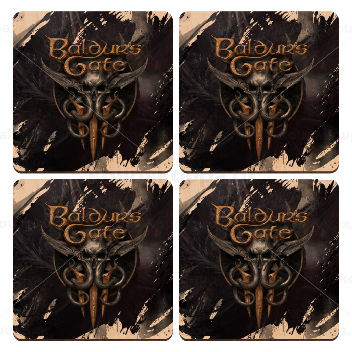 Baldur's Gate, ΣΕΤ x4 Σουβέρ ξύλινα τετράγωνα plywood (9cm)