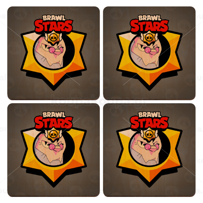 Brawl Stars Byron, ΣΕΤ x4 Σουβέρ ξύλινα τετράγωνα plywood (9cm)