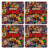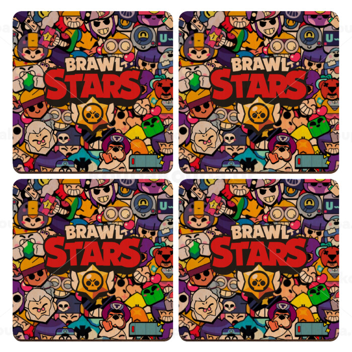 Brawl Stars characters, ΣΕΤ x4 Σουβέρ ξύλινα τετράγωνα plywood (9cm)