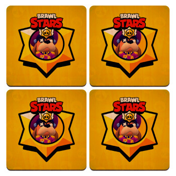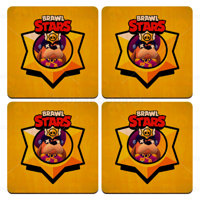 Brawl Stars Ruffs, ΣΕΤ x4 Σουβέρ ξύλινα τετράγωνα plywood (9cm)