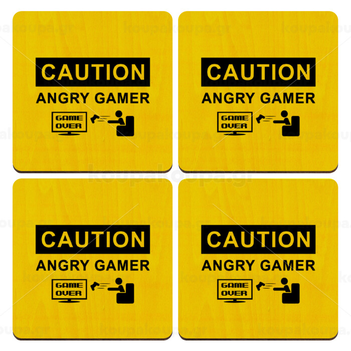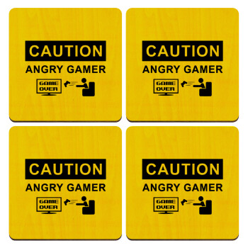 Caution, angry gamer!, ΣΕΤ x4 Σουβέρ ξύλινα τετράγωνα plywood (9cm)
