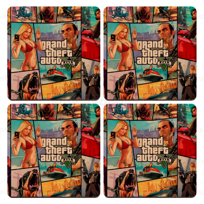GTA V, ΣΕΤ x4 Σουβέρ ξύλινα τετράγωνα plywood (9cm)