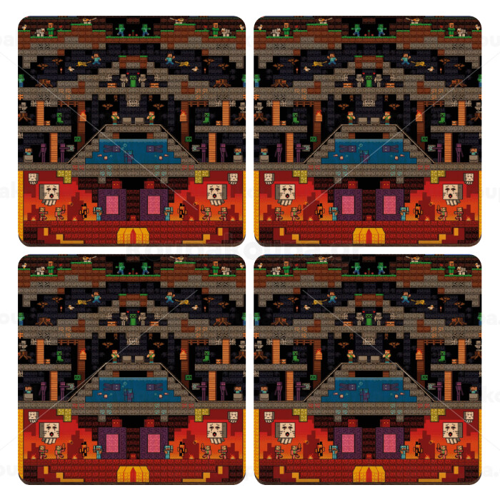 Minecraft 2D map, ΣΕΤ x4 Σουβέρ ξύλινα τετράγωνα plywood (9cm)