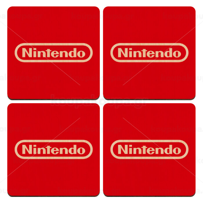 Nintendo, ΣΕΤ x4 Σουβέρ ξύλινα τετράγωνα plywood (9cm)