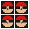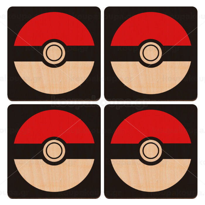 Pokemon ball, ΣΕΤ x4 Σουβέρ ξύλινα τετράγωνα plywood (9cm)