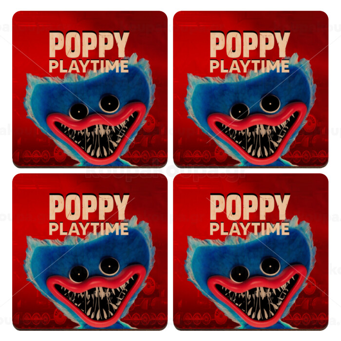 Poppy Playtime Huggy wuggy, ΣΕΤ x4 Σουβέρ ξύλινα τετράγωνα plywood (9cm)