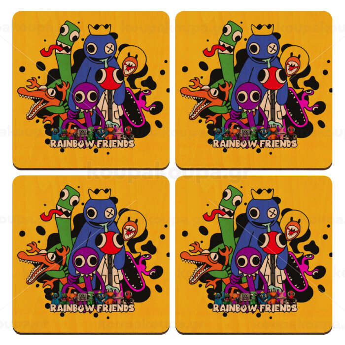 Rainbow friends, ΣΕΤ x4 Σουβέρ ξύλινα τετράγωνα plywood (9cm)