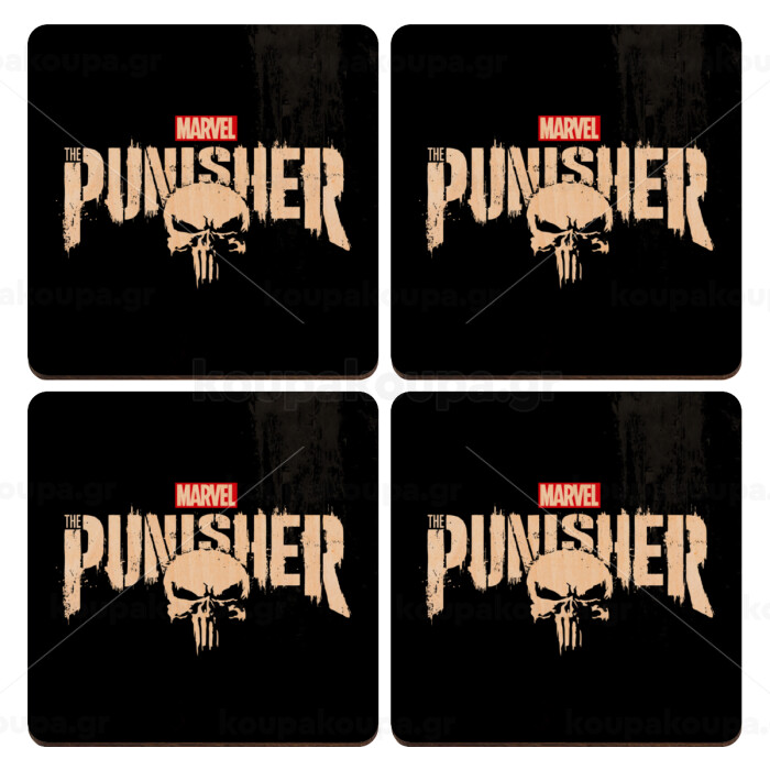 The punisher, ΣΕΤ x4 Σουβέρ ξύλινα τετράγωνα plywood (9cm)
