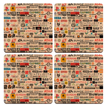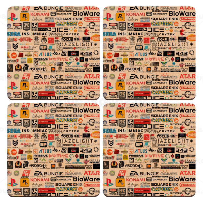 Video Game Studio Logos, ΣΕΤ x4 Σουβέρ ξύλινα τετράγωνα plywood (9cm)