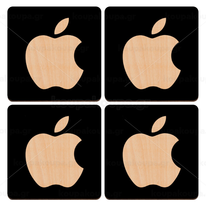 apple, ΣΕΤ x4 Σουβέρ ξύλινα τετράγωνα plywood (9cm)