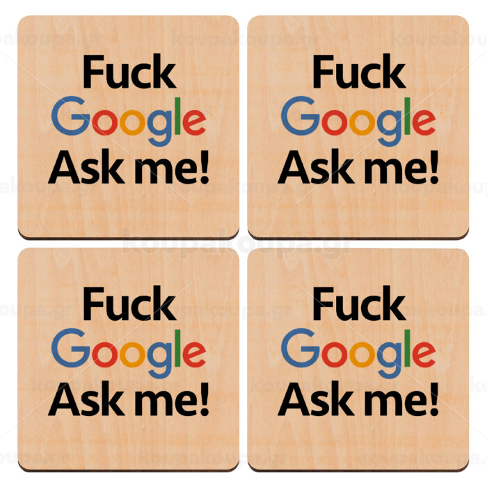 Fuck Google, Ask me!, ΣΕΤ x4 Σουβέρ ξύλινα τετράγωνα plywood (9cm)