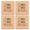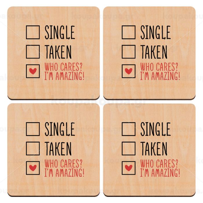 Single, Taken, Who cares i'm amazing, ΣΕΤ x4 Σουβέρ ξύλινα τετράγωνα plywood (9cm)