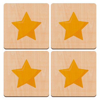 Star, ΣΕΤ x4 Σουβέρ ξύλινα τετράγωνα plywood (9cm)