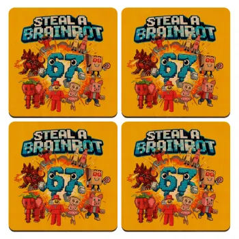 Steal a Brainrot 67 Roblox Style, ΣΕΤ x4 Σουβέρ ξύλινα τετράγωνα plywood (9cm)