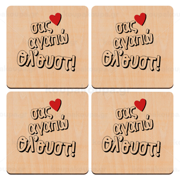 Σας αγαπώ όλ'ουστ!, ΣΕΤ x4 Σουβέρ ξύλινα τετράγωνα plywood (9cm)