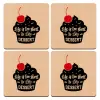 Life is too short, to skip Dessert, ΣΕΤ x4 Σουβέρ ξύλινα τετράγωνα plywood (9cm)