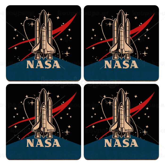 NASA Badge, ΣΕΤ x4 Σουβέρ ξύλινα τετράγωνα plywood (9cm)