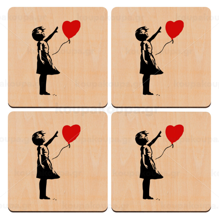 Banksy (Hope), ΣΕΤ x4 Σουβέρ ξύλινα τετράγωνα plywood (9cm)